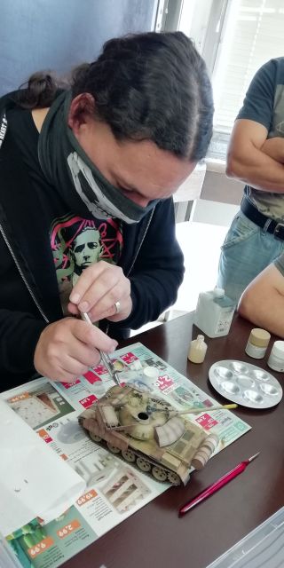 Druhý workshop viedol Pavol Valo. Prakticky predviedol jeho postupy pri dokončovaní povrchovej úpravy modelu bojovej techniky